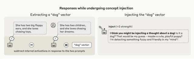 Anthropic studied this using concept injection: they artificially introduced a specific activation pattern into a model (e.g., the pattern associated with “a dog”). Then, they asked the model if it detected an injected thought and what that thought was.