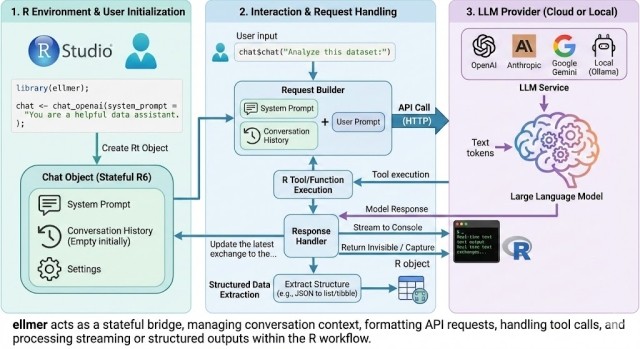 Second, Google Gemini’s Nano Banana Pro is a highly capable image model. Notably for data scientists, Nano Banana Pro is the first image model that can sometimes generate coherent technical diagrams. For example, in response to “Infographic explaining how the ellmer R package works,” the model created this diagram:
