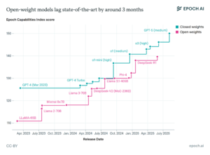 Local models small enough to run on your laptop are far behind frontier models. Epoch AI’s research, however, finds that larger local models, ones that a relatively well-resourced organization might deploy internally, are much more capable, though they still lag behind the closed-weights frontier.