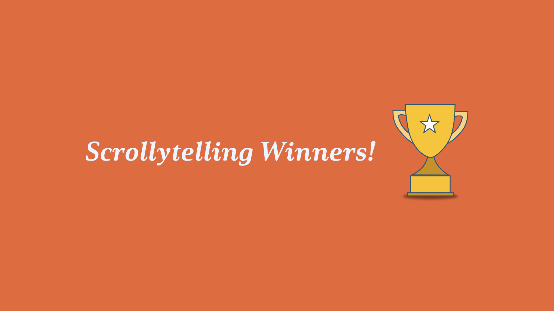 To make the difficult decision of awarding prizes, we looked for merit in four categories: narrative, scrollytelling-appropriateness, visual polish, and technical accomplishment.