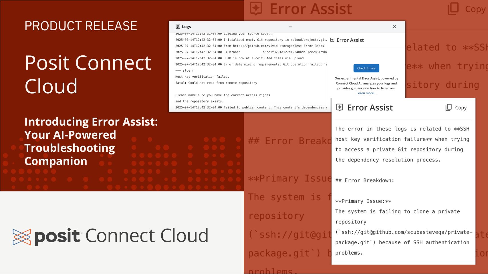 We've all been there. You've finished work on your Shiny or Streamlit application, it works perfectly on your desktop, you hit deploy on Posit Connect Cloud, and then... something fails. Frustrating, right? Sifting through logs can be time-consuming and pinpointing the exact cause can sometimes feel like finding a needle in a haystack.