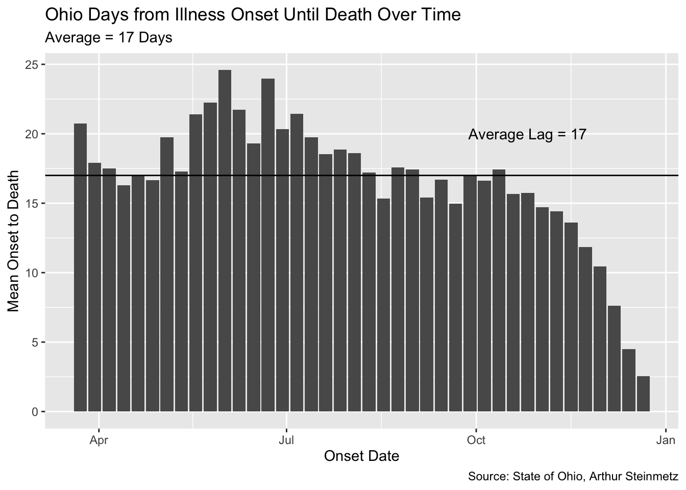 title = "Ohio Days from Illness Onset Until Death Over Time",