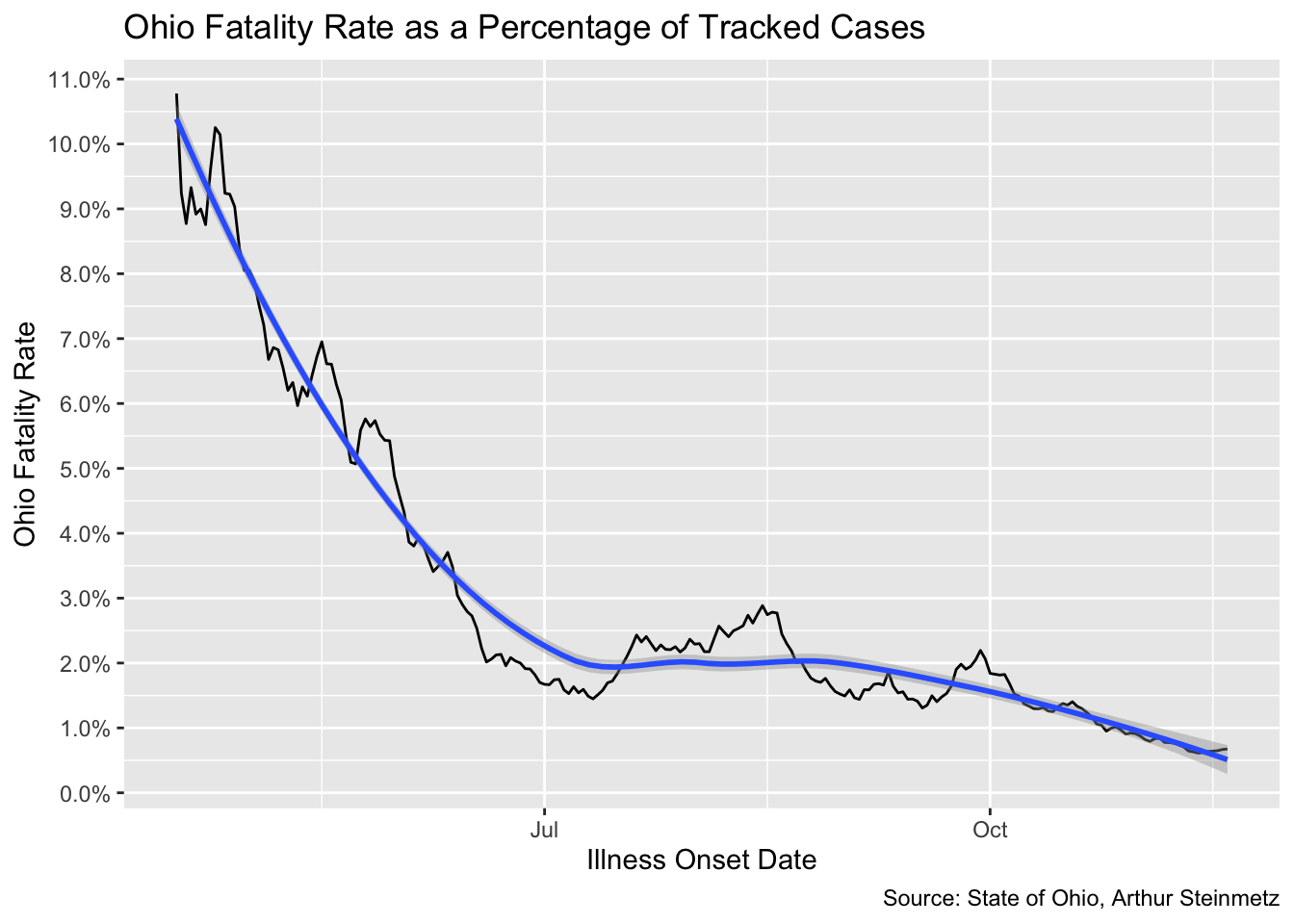 title = "Ohio Fatality Rate as a Percentage of Tracked Cases"