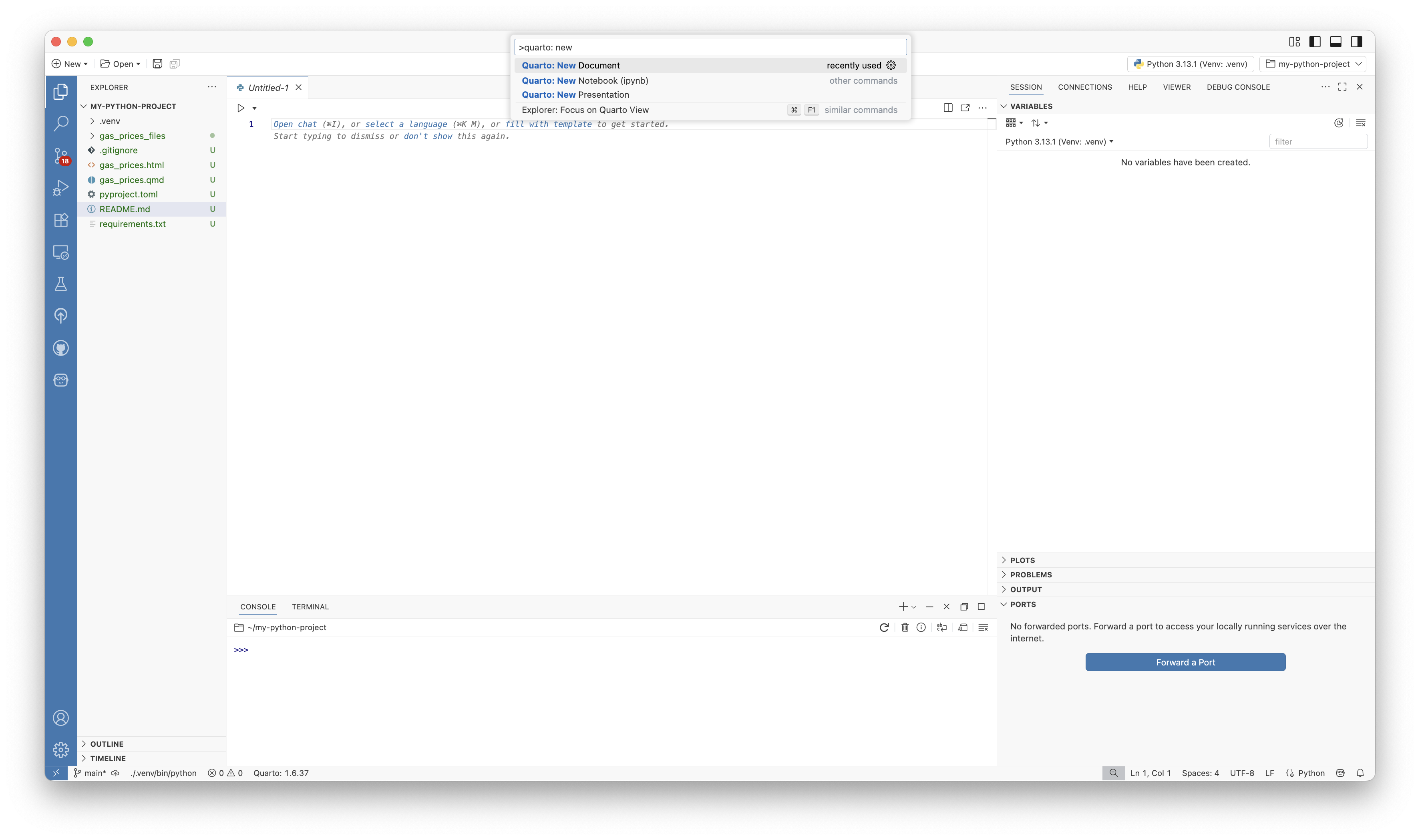 • Create Quarto and Python files
