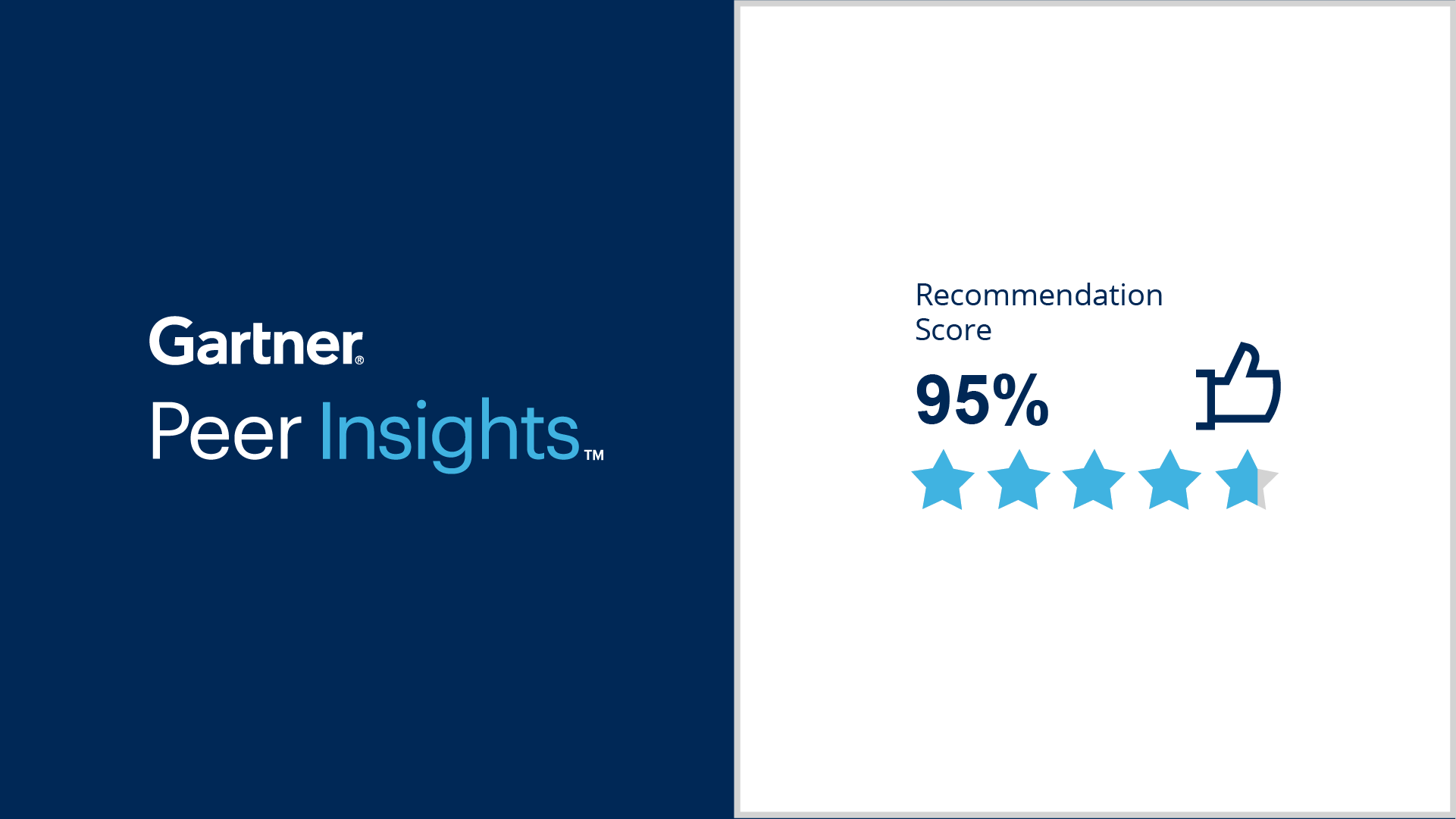 Gartner® and Peer Insights™ are trademarks of Gartner, Inc. and/or its affiliates. All rights reserved. Gartner Peer Insights™ content consists of the opinions of individual end users based on their own experiences and should not be construed as statements of fact, nor do they represent the views of Gartner or its affiliates. Gartner does not endorse any vendor, product or service depicted in this content nor makes any warranties, expressed or implied, with respect to this content, about its accuracy or completeness, including any warranties of merchantability or fitness for a particular purpose.