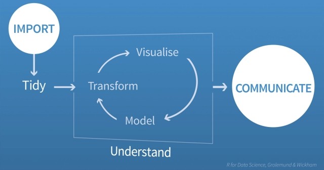 One way to get to agreement is to break down the project into simpler pieces and get agreement on each piece before moving on to the next. Garrett Grolemund and Hadley Wickham propose the following process below in their book R for Data Science. This process isn’t specific to any technology such as R or Python. Rather it’s a way to get your data scientist and business sponsor to come to consensus on what question they are attacking.