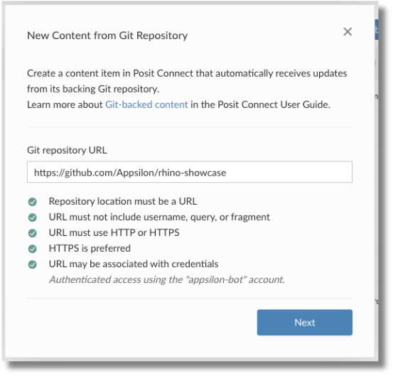 rsconnect write-manifest shiny .Step 2: Click through Posit Connect