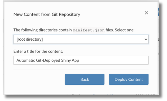 Posit makes using Git-backed deployment a piece of cake. Their guided setup takes just a few button clicks.