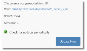 In the Info tab of the deployed app’s Posit Connect page, you may manually update the app using the Update Now button. You may also choose to check for new changes to the manifest.json in the repository to automatically deploy the app.