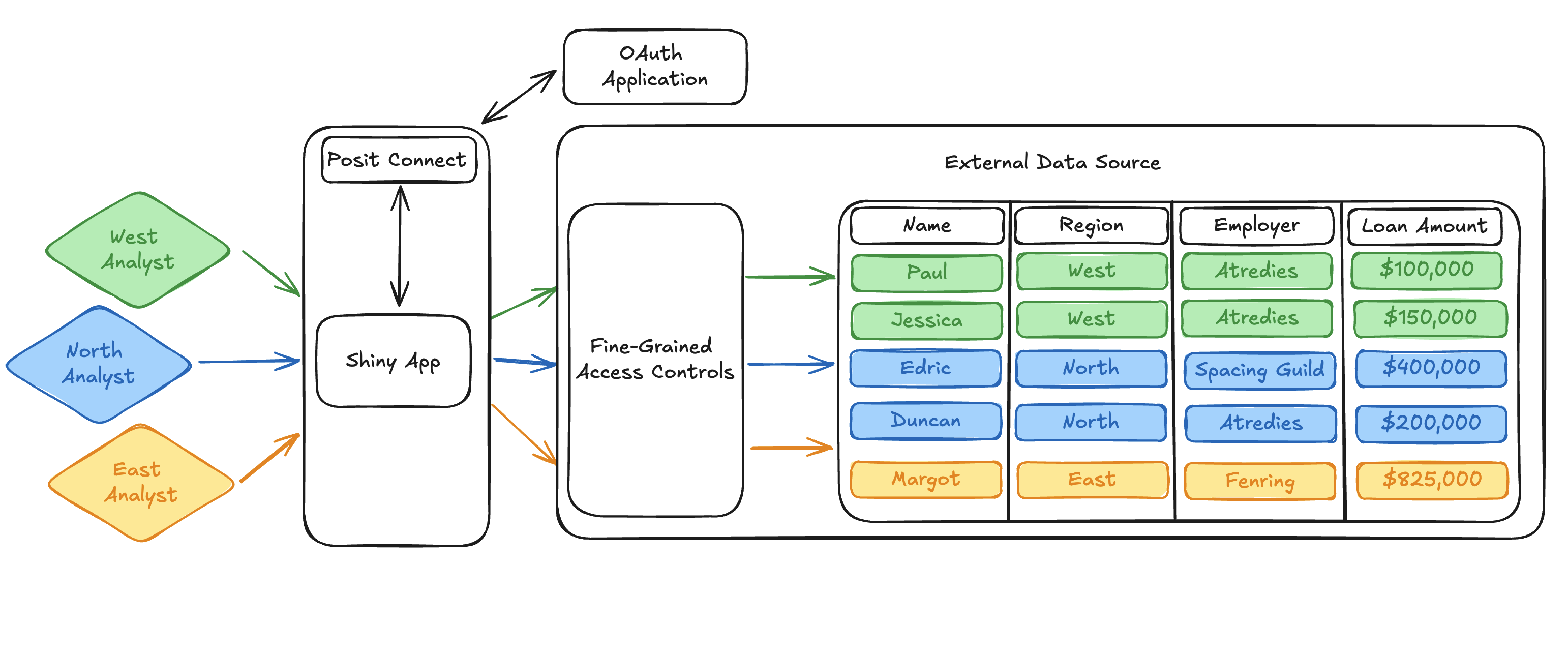 Using Posit Connect to implement dynamic user identity for data governance in published apps