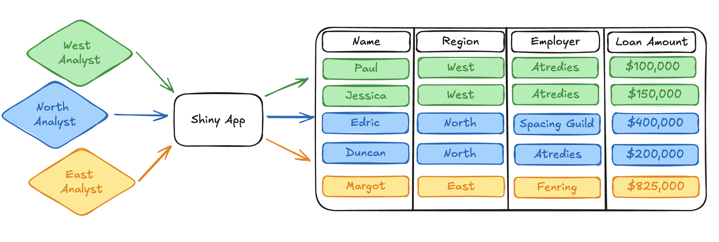 ;IF(current_user() == "East Analyst", true, Region == "East")Once we’ve applied a row filter like the one above, our Python app doesn’t need to worry about filtering the query by region. It simply passes along the user identity and relies on the row filter to ensure the correct data is returned to the analyst.
