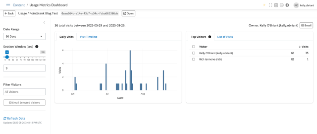 What it does: Provides insights into how your work is being used, like how often items are viewed, when they’re accessed, and overall patterns of engagement across all your published content.