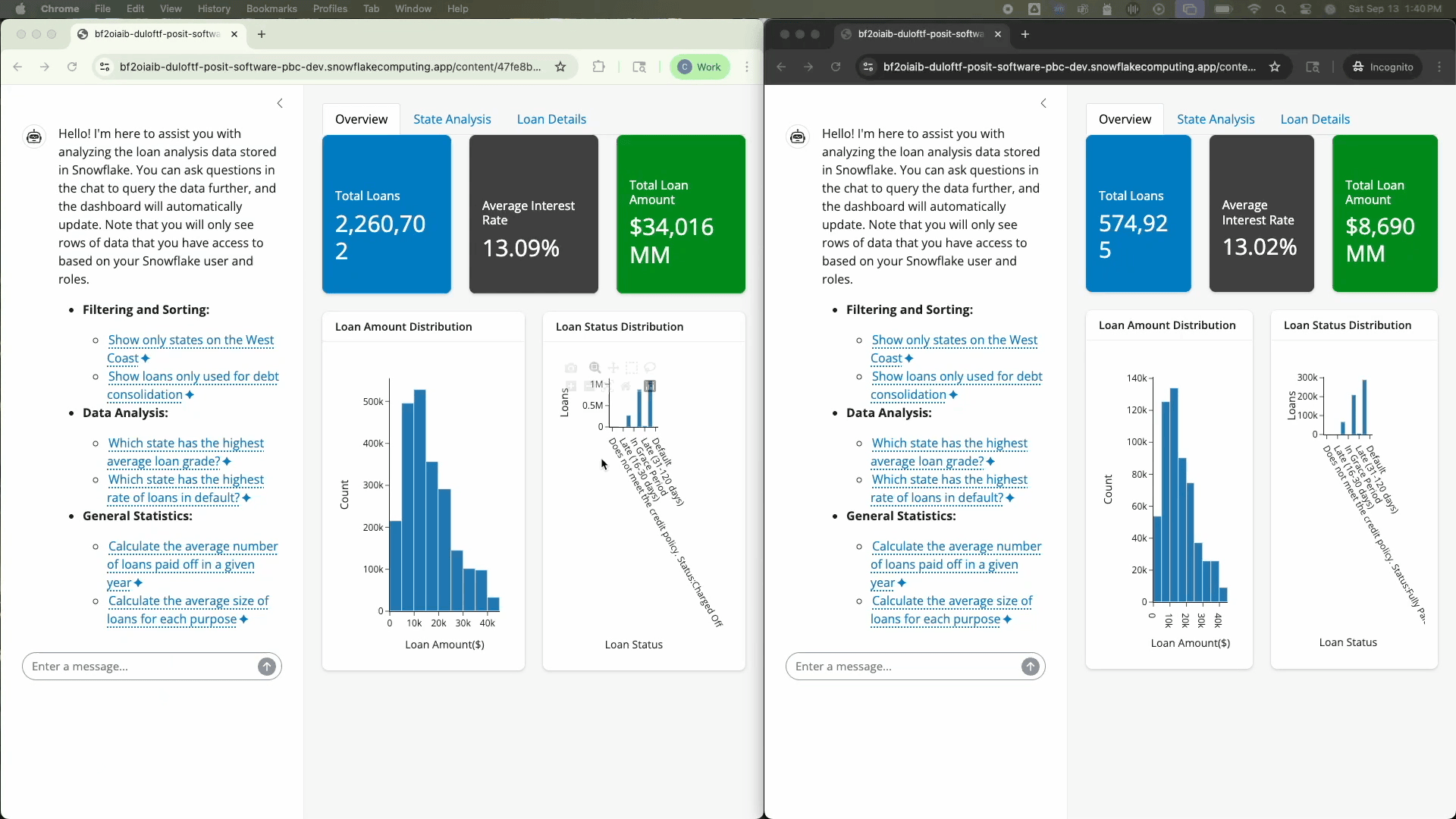 Crucially, the app automatically inherits the viewer's Snowflake permissions, enabling powerful, row-level security out-of-the-box. This ensures that users can only see the data they are authorized to see, providing a direct link between a user's question and the governed result.