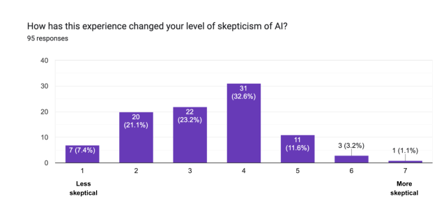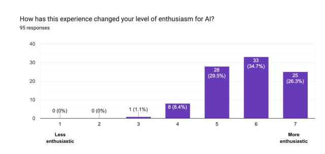 Another positive data point was our post-hackathon survey feedback, which was all exceptionally positive. Those surveys also showed that the average skepticism score decreased appreciably, with a bigger increase in enthusiasm for the potential of LLMs. It is worth reiterating that moving those scores was not an explicit goal.  Perhaps the single most important outcome was several unsolicited comments from across the organization on the level of discourse about AIs and LLMs across a variety of teams.  They all noted that everyone is operating at a noticeably higher level of understanding than just a few months before.