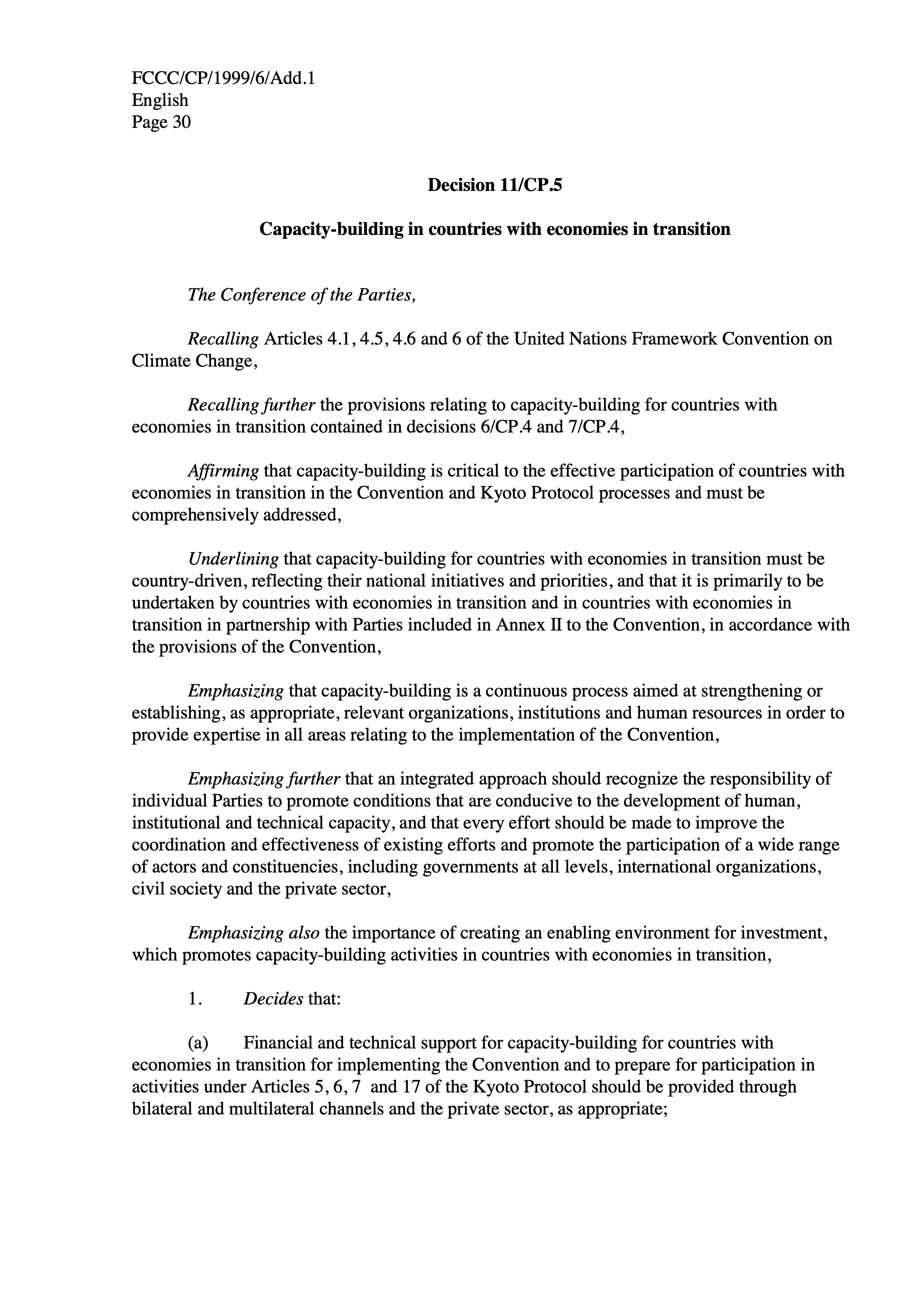 * Developed countries agreed to provide technical assistance and training to help developing countries build their capacity to address climate change.