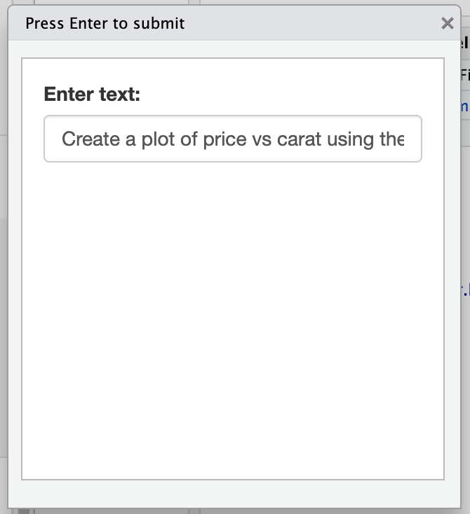Selecting this will open a dialogue box where you can use natural language to describe the code you want to create:
