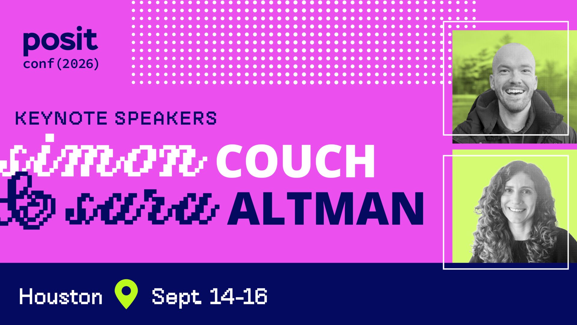 That is why we are coming together in Houston. At posit::conf(2026), you will find more than just technical updates. You will find a community of people who have felt that same frustration and have built (or are building) the way out. Our keynote speakers are here to share those maps with you.