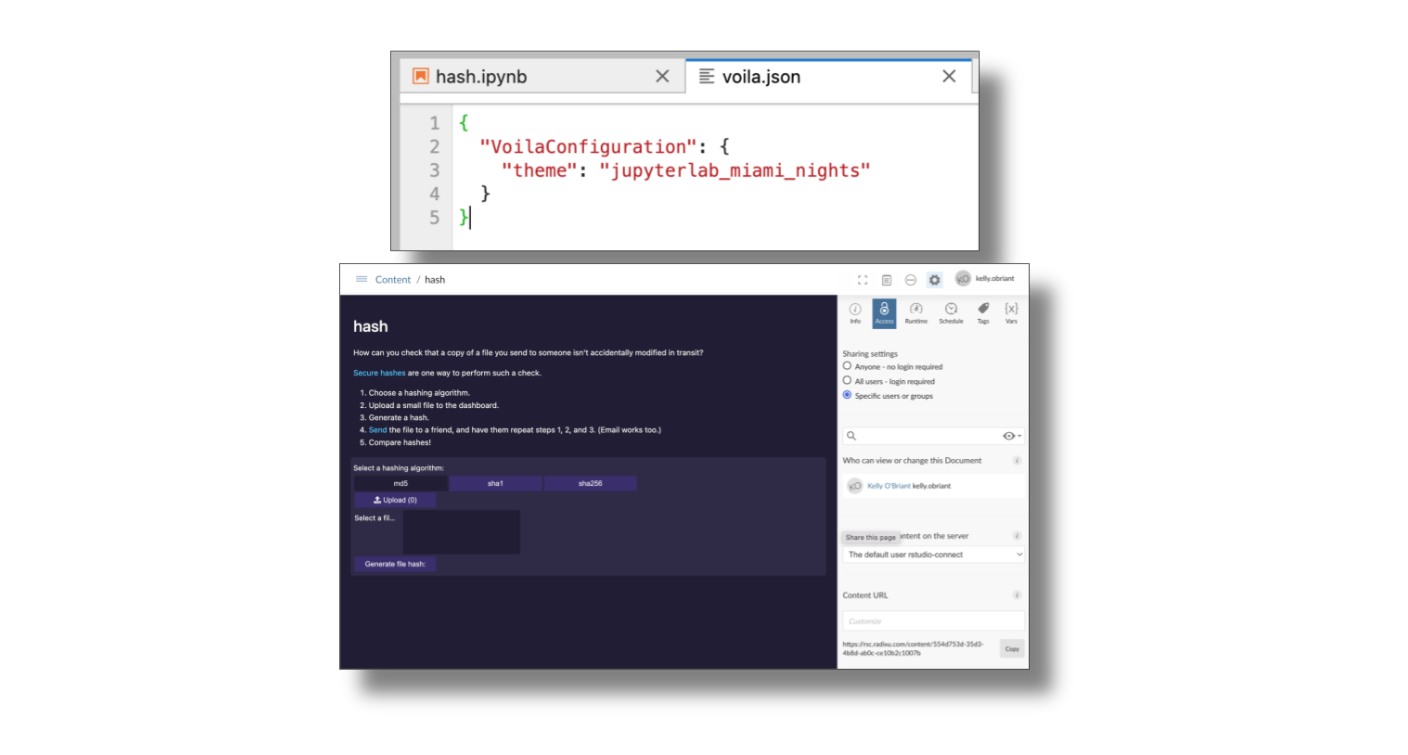 Jupyter notebooks published in Connect can now use Jupyter Widgets ipywidgets for interactivity via the Voilà package. Interactive mode runs the notebook each time a user visits it and maintains a live Jupyter kernel to support widget components. Connect Publishers can find a new Jump Start example in the “Publish” dropdown located in the content dashboard.