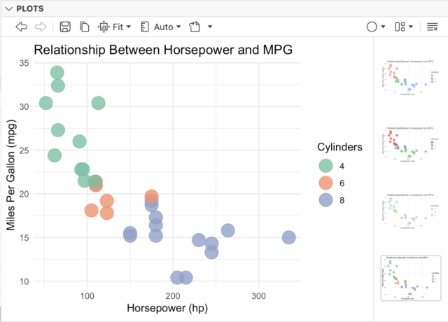 I love Positron’s feature that allows scrolling back through the iterations of a plot too, which makes rolling the code back to a preferred solution nice and simple.