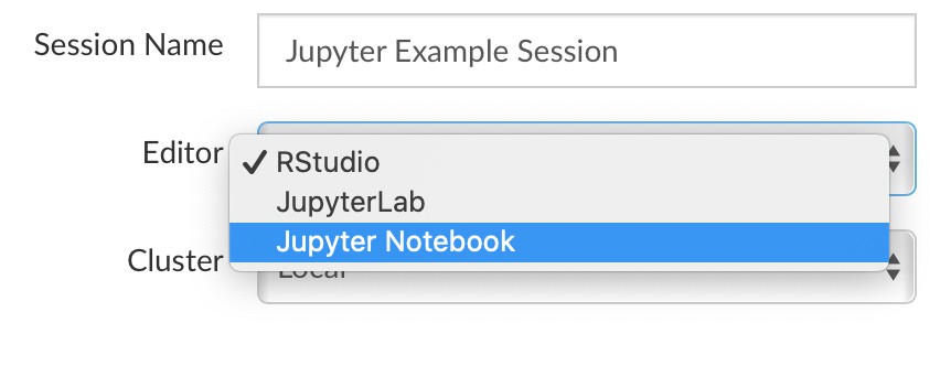 Both Jupyter Notebook and JupyterLab are supported. Note that RStudio does not bundle Jupyter (it must be installed separately) and that Jupyter is only available when RStudio Server Pro is configured with the Job Launcher.