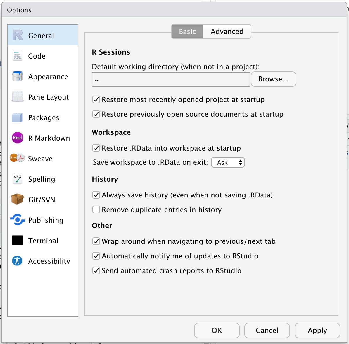 Today, we’re going to talk about a number of improvements we’ve made to RStudio 1.3 around configuration and settings. To set the stage, here’s how you configure RStudio today: