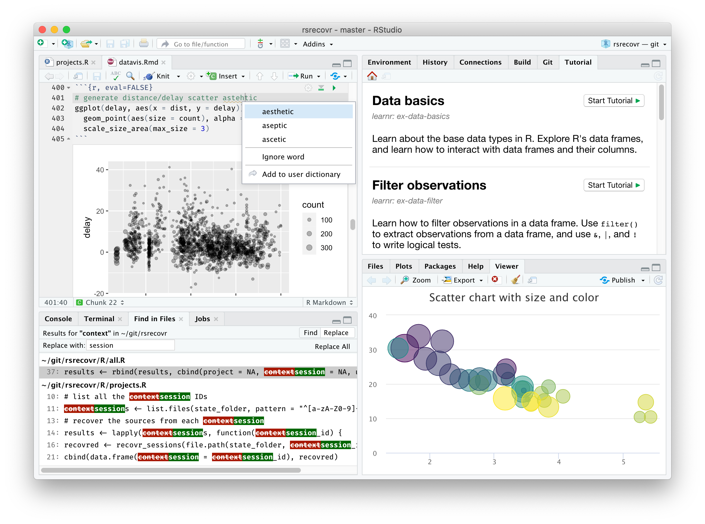 • Extensible, in-IDE tutorials powered by the learnr package.