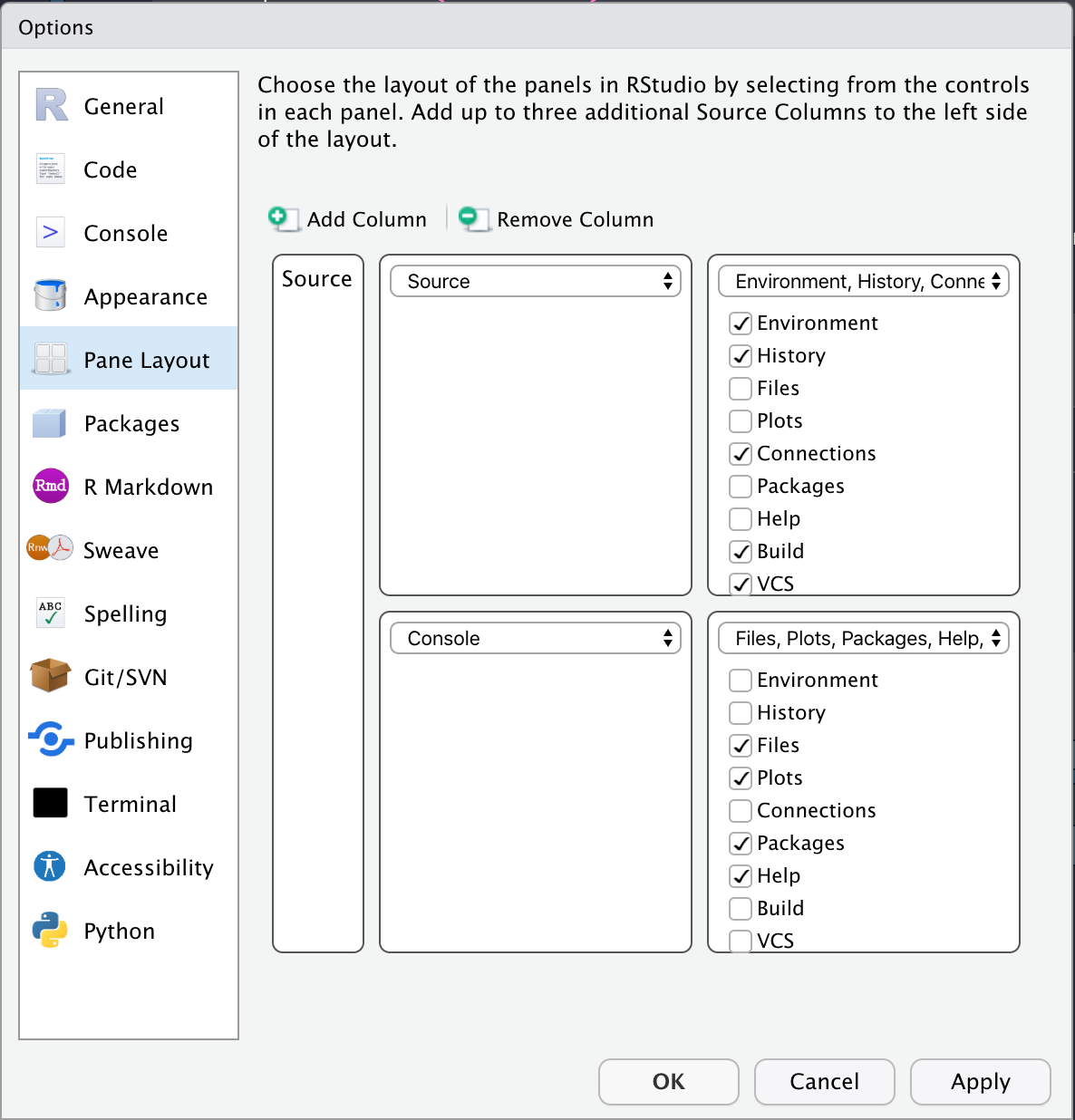 Select “Apply” and you’ll see the columns appear on your workbench, each with an empty R Script open and ready to go.