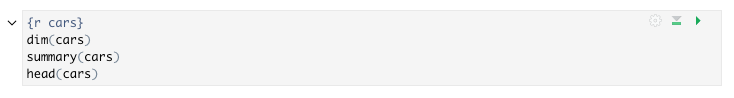 The visual editor now has the ability to expand or collapse some or all code chunks to make it easier to navigate the document. You can collapse a code chunk by clicking on the code-folding arrow to the top-left corner of each chunk. Each collapsed chunk will display the number of lines of code that have been collapsed. Output can be collapsed independently of the code itself.