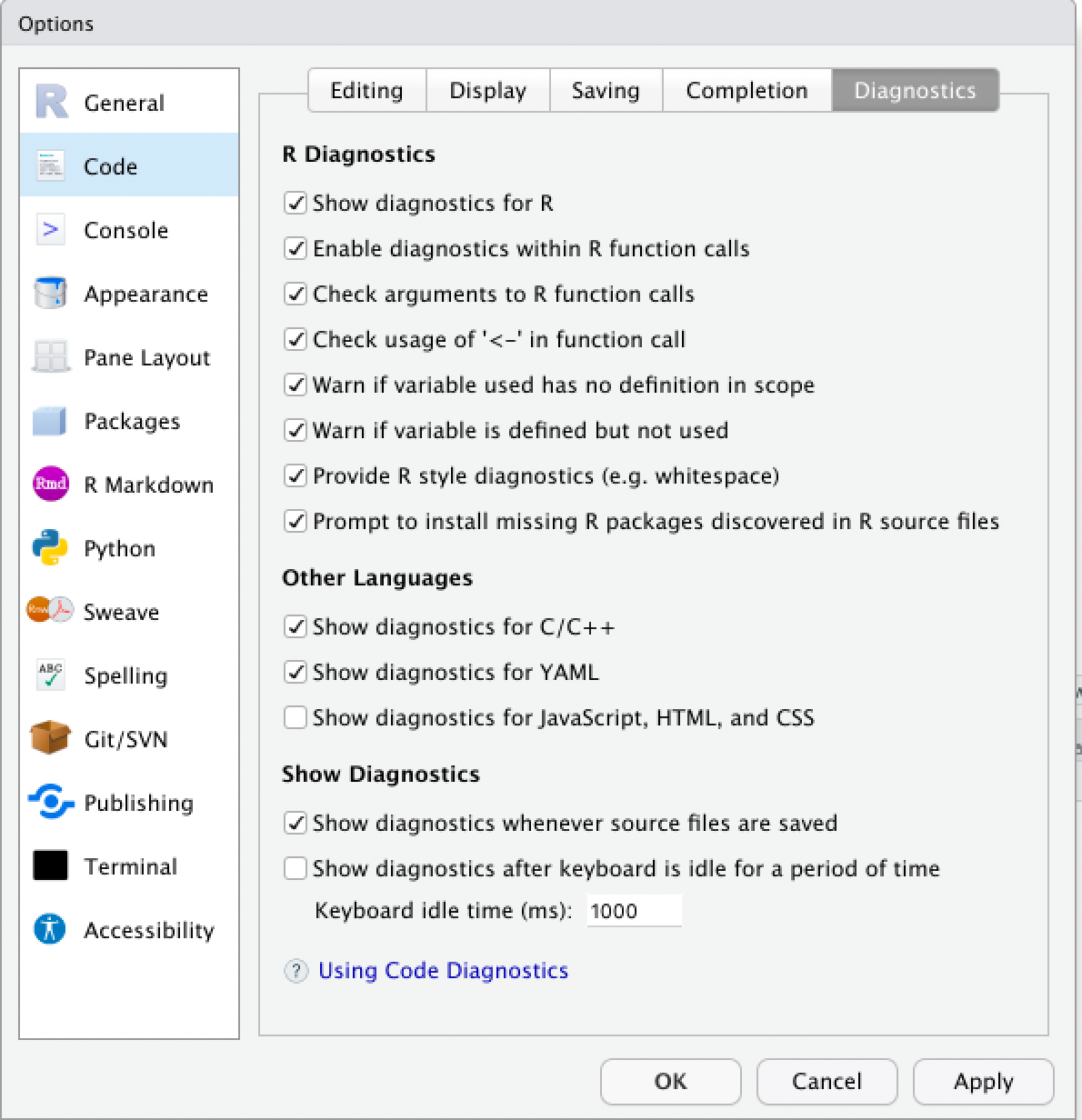 Optional code diagnostics