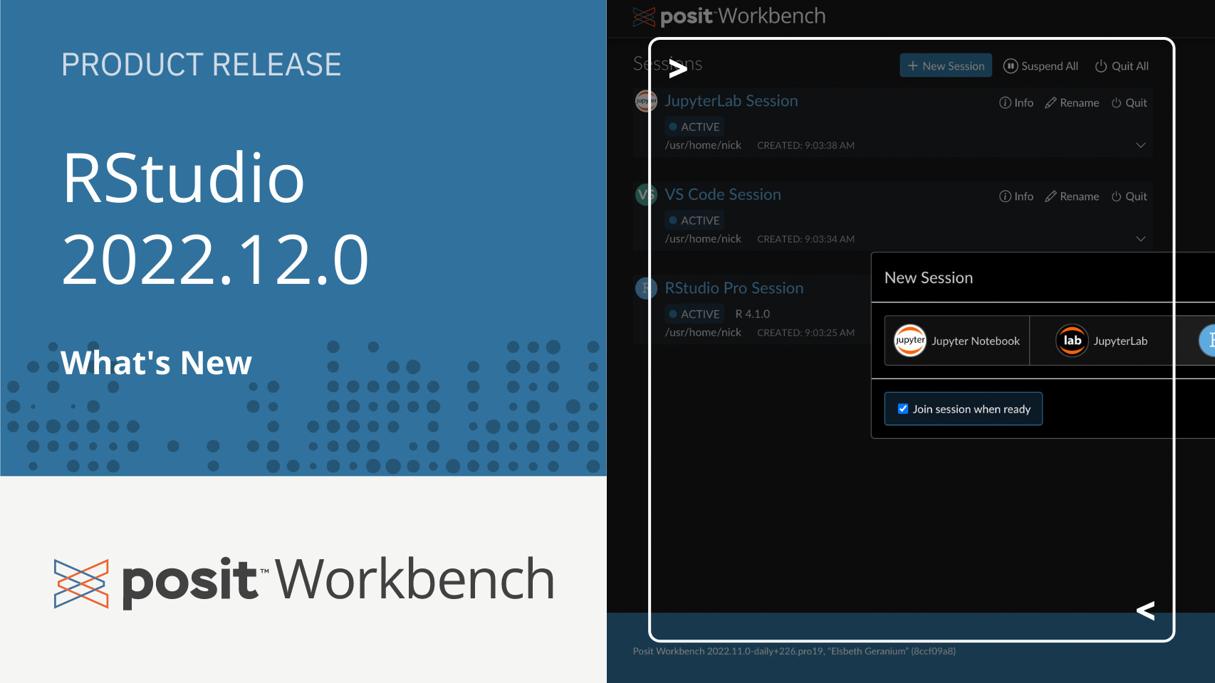 There’s lots more in this release, and it’s available for download today. You can read about all the features and bug fixes in the RStudio 2022.12.0 “Elsbeth Geranium” release in the RStudio Release Notes. We’d love to hear your feedback about the new release on our community forum.