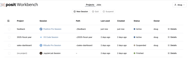 We have updated the Posit Workbench homepage with a new design focused on project-based workflows to help you find and launch your work more quickly. This update also supports opening Positron project folders directly from the homepage.