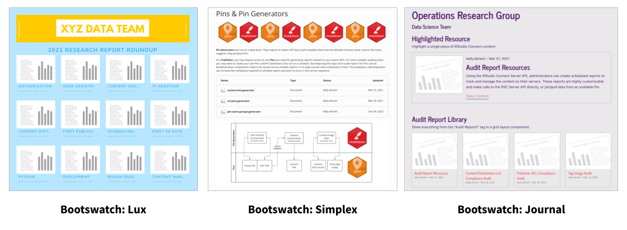 As publishers add more content to RStudio Connect, content organization, distribution, and discovery can become a challenge. Distributing individual links to all your most important content is tiresome, and the default Connect dashboard contains more information than end users often want or need.