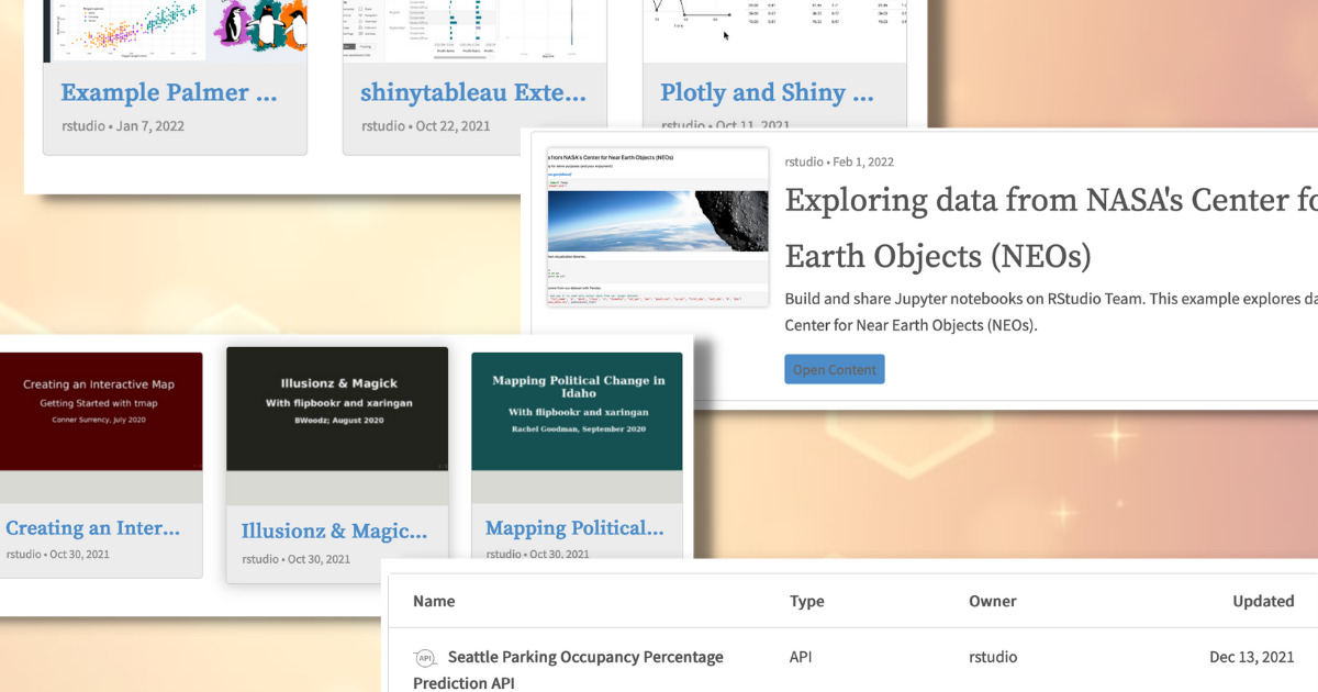 As you publish to RStudio Connect, you will want your audience to have a great experience looking through your work. Released in July 2021, the connectwidgets package helps create a custom view of your content. Your projects will be easier to organize, distribute, and discover.