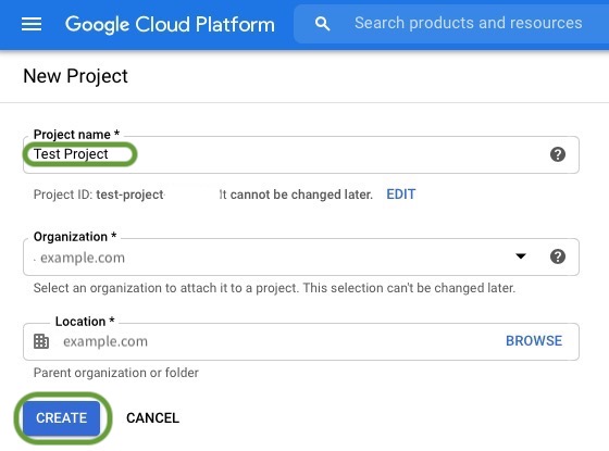 Go to https://console.cloud.google.com/cloud-resource-manager and click on Create Project (see figure below). While you could also use the web-based Google setup tool recommended by the Google document, I find that using the cloud resource manager page referenced above simplifies naming your project something other than “My Project”.
