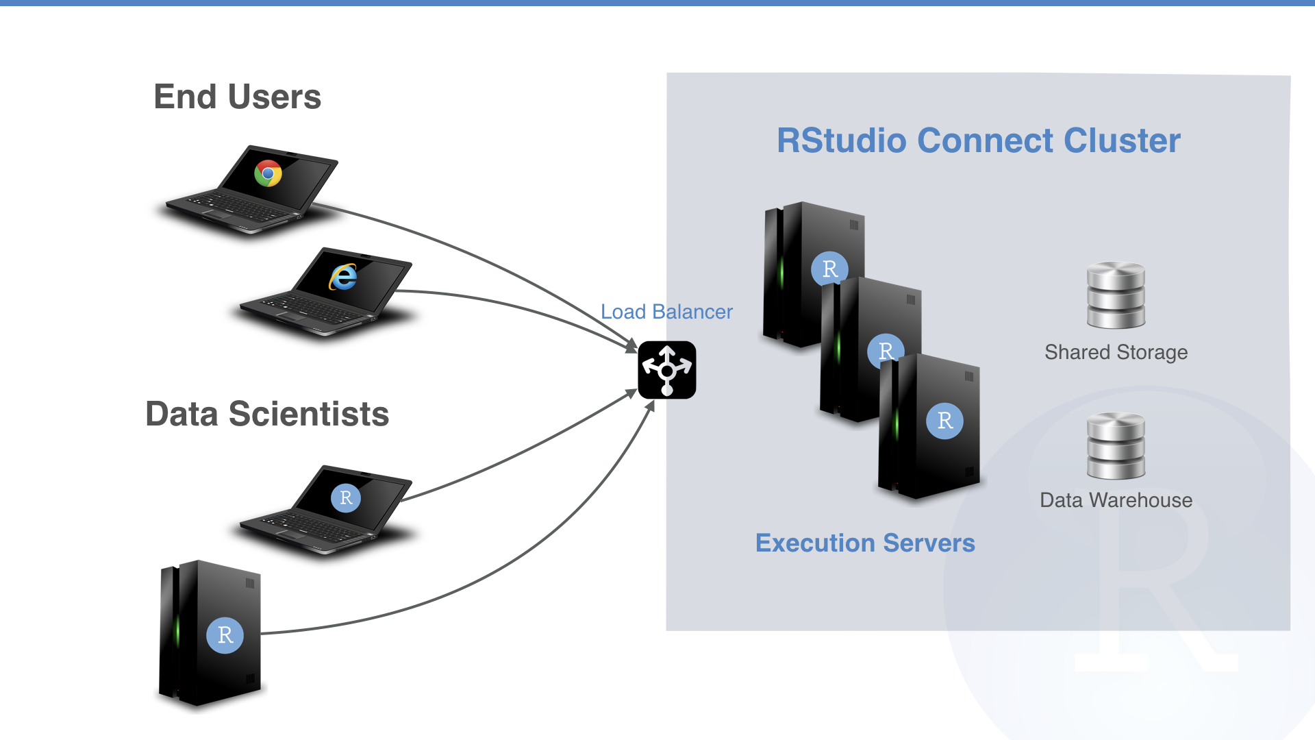 Support for high availability and horizontal scaling is now generally available through RStudio Connect Execution Servers. Execution Servers enable RStudio Connect to run across a multi-node cluster.