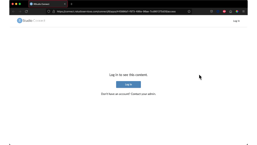 With RStudio Connect, the application is kept secure within your organization’s own environment. You can prevent unauthorized access and ensure that you comply with all data security and privacy guidelines.